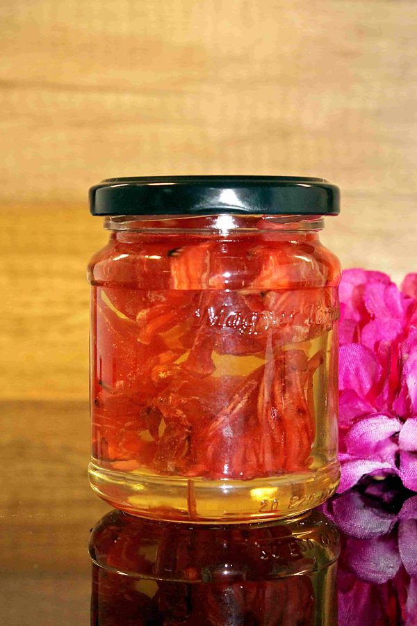 A hibiszkuszt az emberek nagy része csak tea formájában látta, azonban hatalmas gyönyörű piros virágokkal rendelkezik. Ezek a virágok lettek megaszalva, ezáltal színezve a mézünket.
